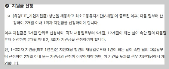 청년이 입사 후 12개월 이상 고용이 유지되어야 전체 장려금 지급 가능